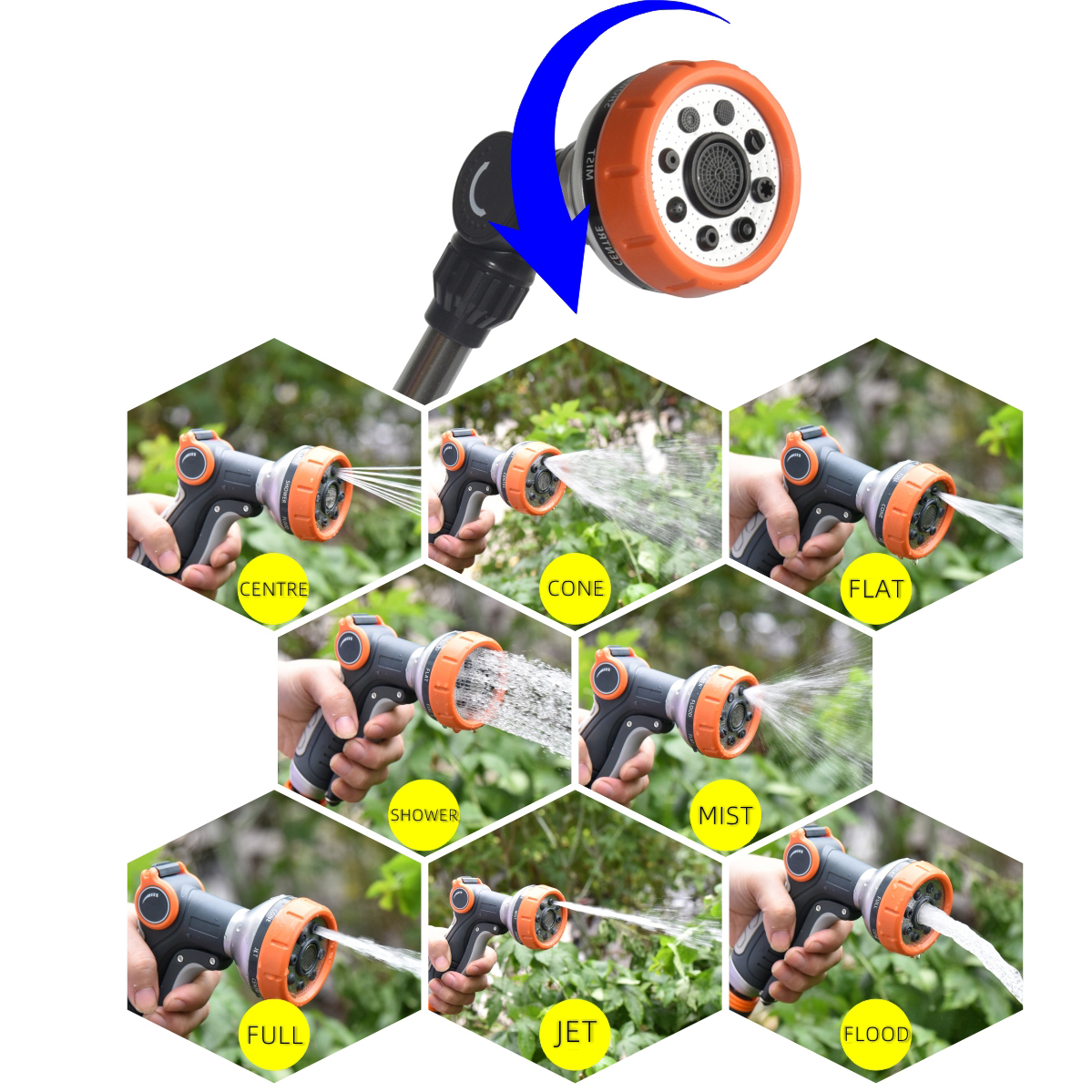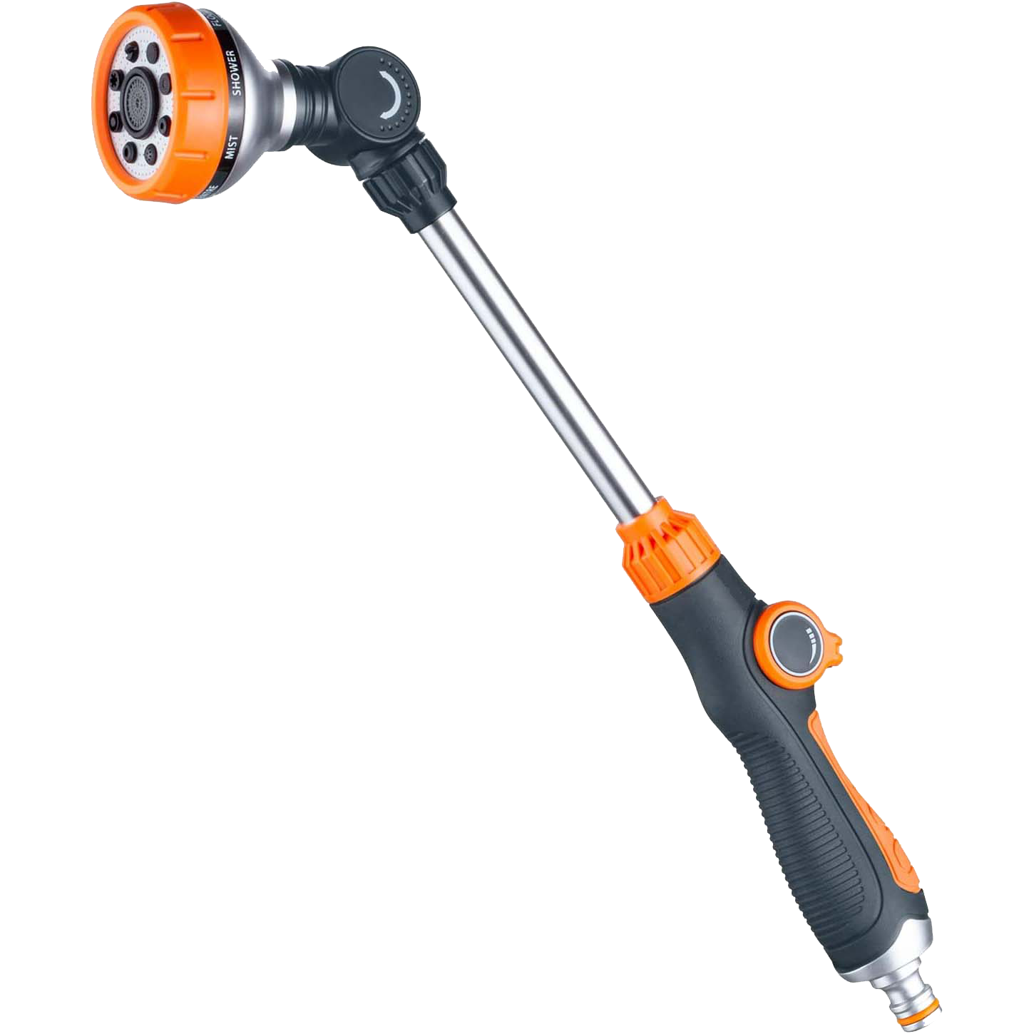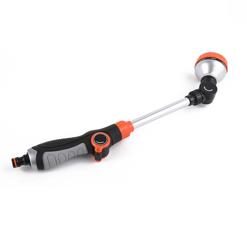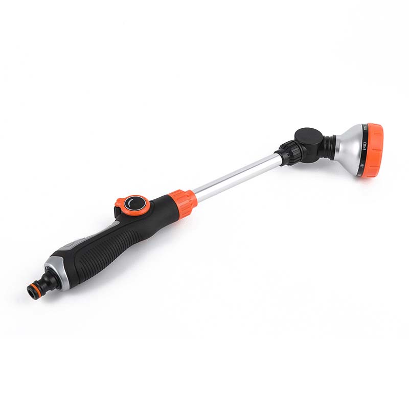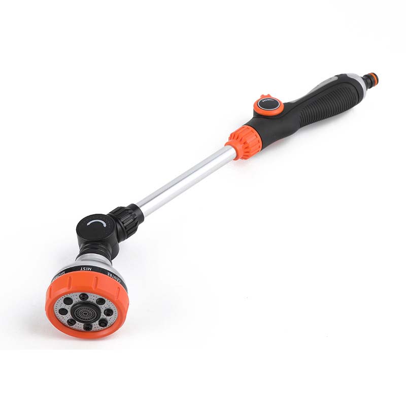 1, Varilla de riego de jardín de plástico de 8 vías con válvula 2. La válvula controla el encendido y apagado del agua y el flujo de agua. 3, la longitud es de 470 mm 4. Material: Cuerpo de plástico ABS con revestimiento de TPR, tubo de aluminio. 5. Patrón: Centro, Niebla, Ducha, Enjuague, Plano, Remojo, Cono, Chorro. 6. Tamaño del producto: 47 x 6,5 x 6,5 cm 7. Peso del producto: 290 g