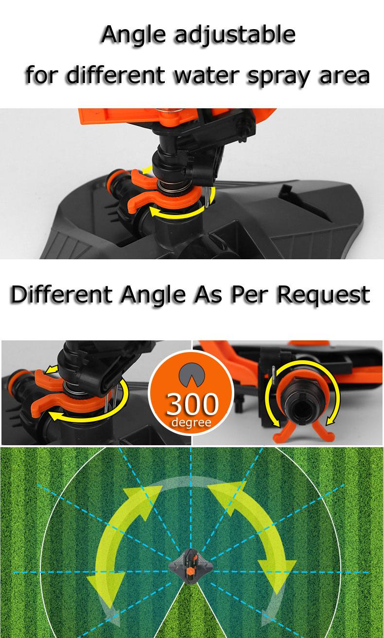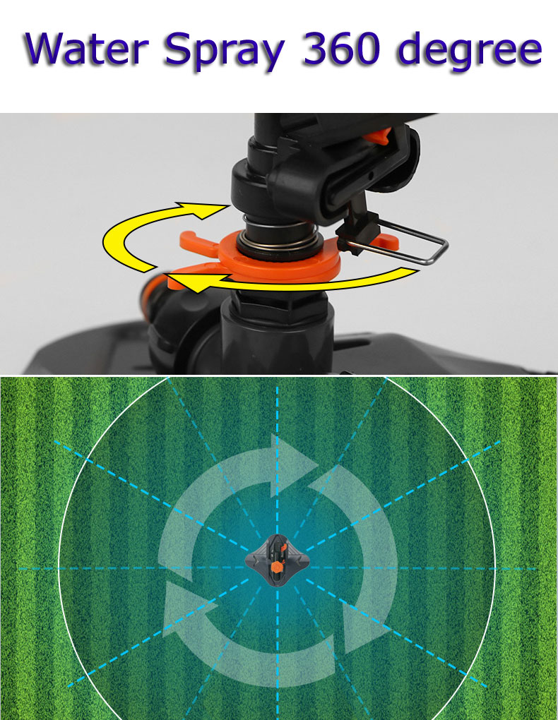 1. Aspersor de impulso de manguera de agua de jardín de plástico con base. 2. Propósito: agua de jardín, agua de semillas, agua de flores, riego de granjas y más. 3. Distancia del agua: 10 m máx. 4, Ángulo del agua: giratorio de 15 grados a 360 grados cuando hay agua. 5. La base: La base de plástico duradera es estable. Algunas bases se pueden unir para formar el sistema. 6. Tamaño del producto: 25 x 20 x 10 cm 7. Peso del producto: 0,25 kg